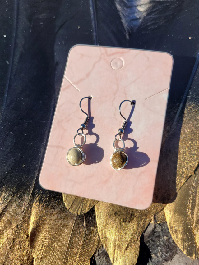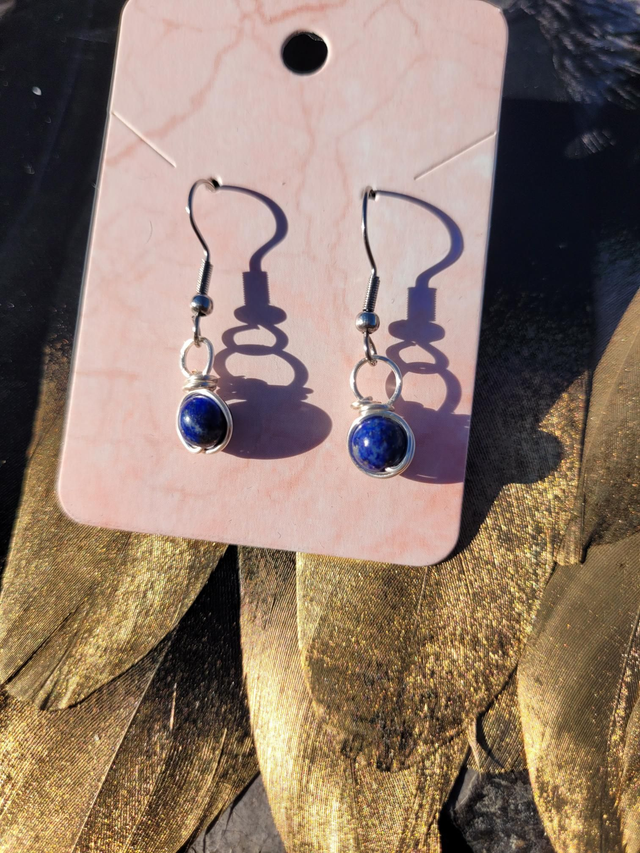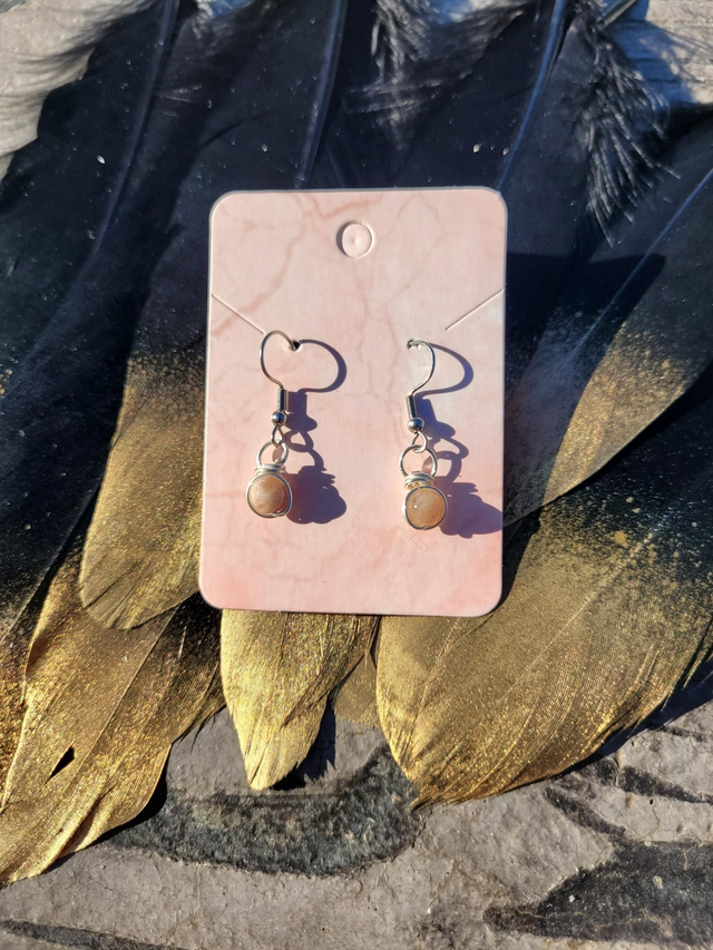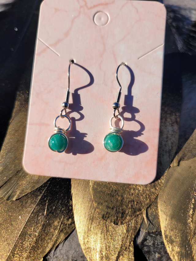 Boucles d'oreilles avec perles en pierre, fil de cuivre argenté anti-ternissement et crochets en acier inoxydable.