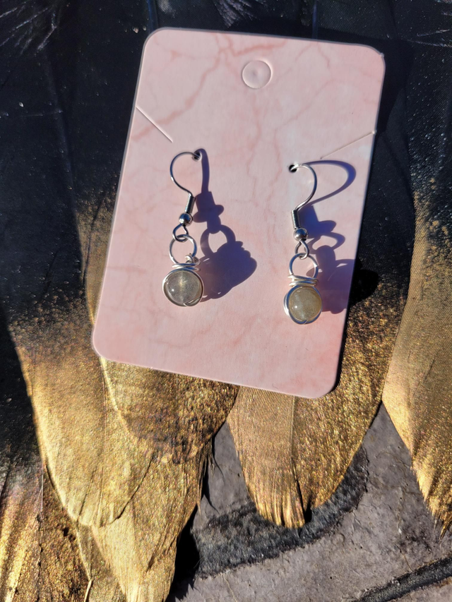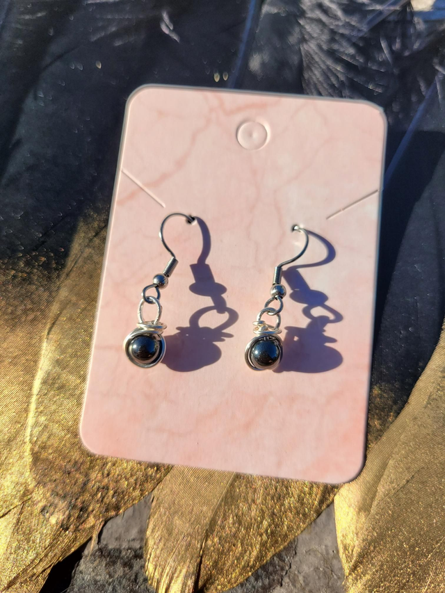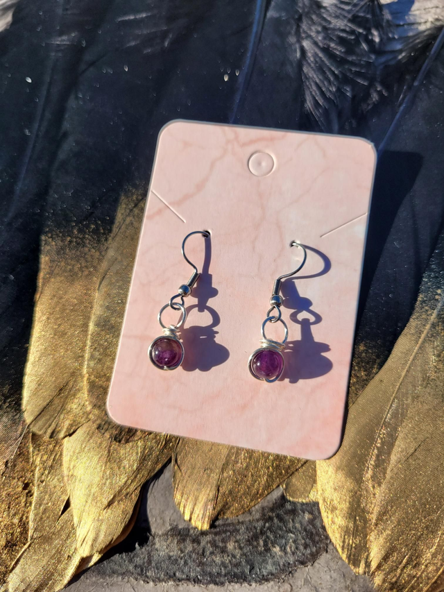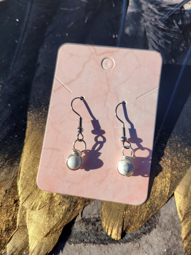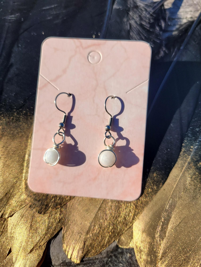 Boucles d'oreilles avec perles en pierre, fil de cuivre argenté anti-ternissement et crochets en acier inoxydable.